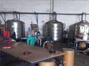 Awak media tidak diperbolehkan untuk mengambil gambar seakan-akan ada sesuatu yang mungkin disembunyikan dari dalam pabrik. Kemudian di dalam pabrik kami melihat ada tumpukan kardus yang berlabel BM1 sudah terkemas rapih diduga itu adalah kemasan oli curah. Terlihat juga wadah tabung penampung oli yang tergolong cukup besar terbuat dari bahan stenlis, drum yang berisi oli, dan dus kemasan oli yang siap kirim.